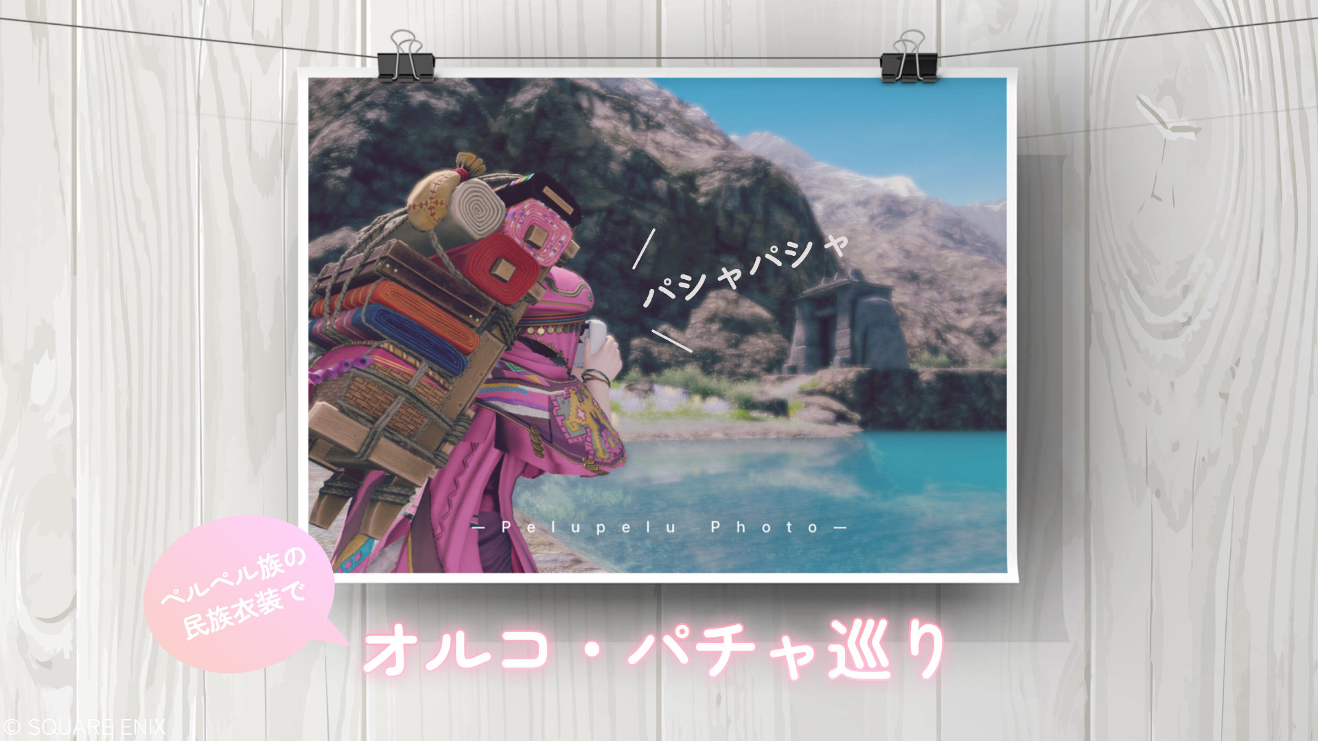 友好部族クエスト『ペルペル族』が誓約★になったので、ペルペル族になりきってオルコ・パチャ撮影ツアーに出かけました。 日本の文化に興味津々な外国人が、夏に日本旅行に来て浴衣レンタル専門店で着付けをして花火大会に出かけるアレです。 NPCか? クエストで手に入れたペルペルカロとペルパック。そして、ウォーコー・ゾーモーで手に入れ... -