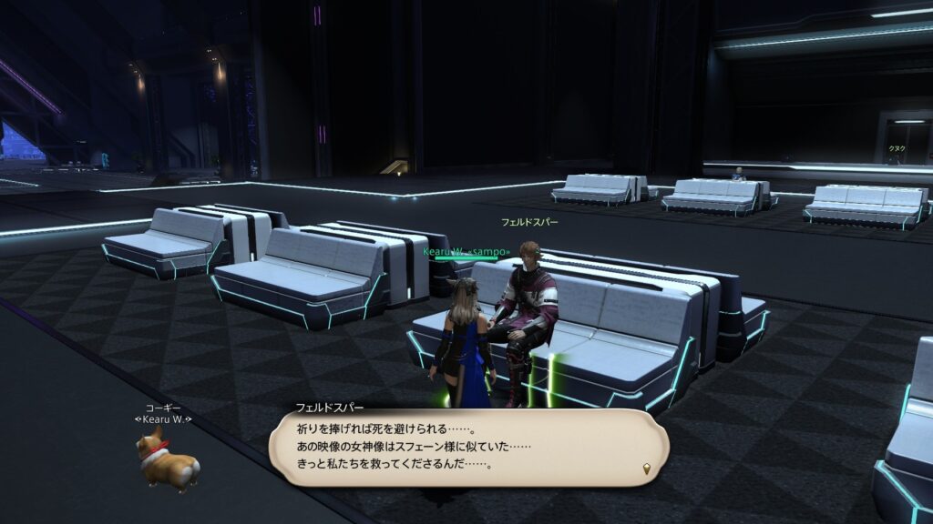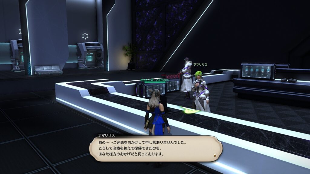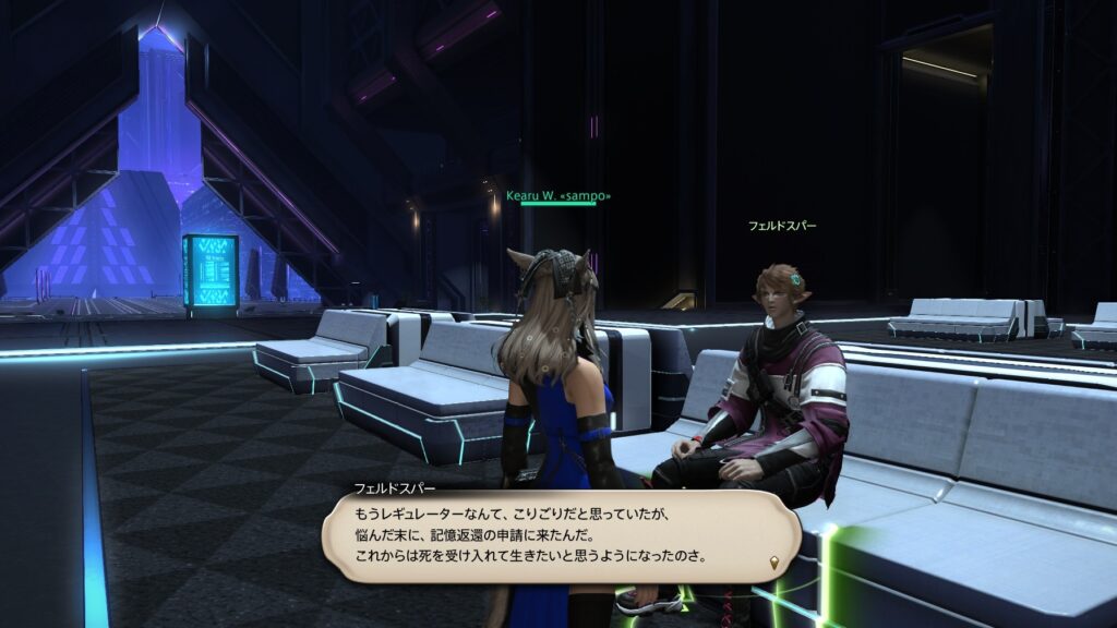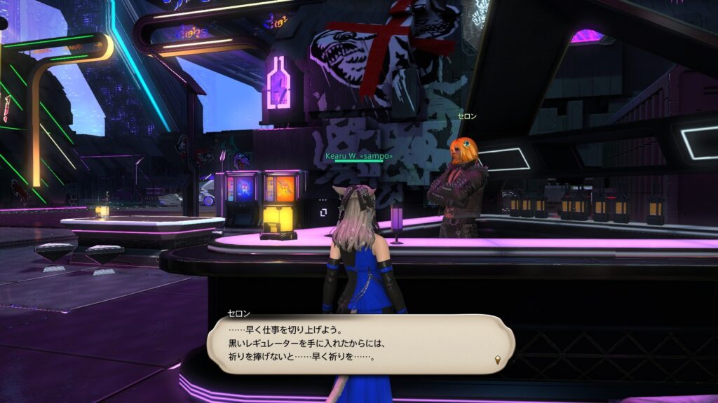 以前に、「黒レギュレーターが配られて以降、ソリューション・ナインに黒レギュレーターをつけたNPCがいる」という内容の記事を書いたのですが、7.3メインストーリーでのヒントトークに変化がありました。