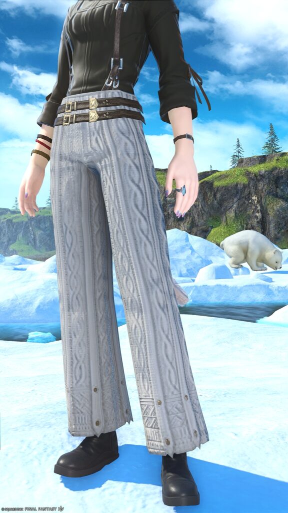 同じくニット柄入りのパンツ『クリスタリウム・ヒーラーパンタロン』も今の季節にとてもおすすめですので、欲しい人は詩学を持ってユールモアに行きましょう。